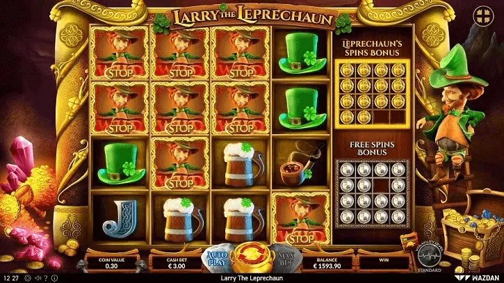 Larry the Leprechaun yra Wazdan kazino žaidimų kūrėjų sukurtas žaidimas, kuris buvo išleistas 2019 metais. Žaidimas išsiskiria savo airiška tematika, todėl jeigu mėgstate Šv.Patriką, alų, pinigus ir viską, kas susiję su Airija, tuomet šis žaidimas jums tikrai patiks. Pats žaidimas yra labai smagus, o kadangi žaidimas yra naujas, tai galima mėgautis išskirtine grafika, aukšto lygio animacijomis bei puikiu garso takeliu.